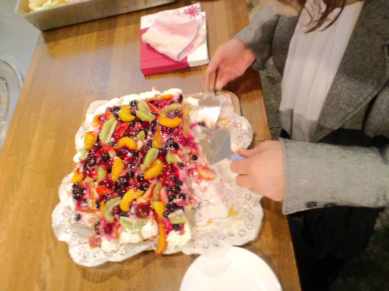 人前式では、リングリレーを一本のリボンを通してやる中で、皆さんの一体感も出て盛り上がったり、沖縄からいらっしゃった難聴の新婦のお父様には、要約筆記の方がついて下さり、沖縄の慣習?で父と娘がハグする場面があったり、ろう者の新郎のお母様の読み取り通訳を新郎自身が行っり・・・と、メリハリもある良いパーティーでした。