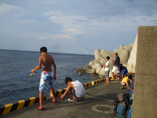 早速、釣のポイント、歩いて3分くらいの堤防を三人は目指しました。