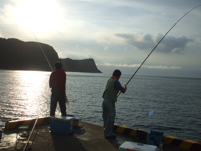ちなみに、左の写真は8時半頃地元の方が釣り上げたカンパチ、50センチくらい。5㌔はあるかという大物。