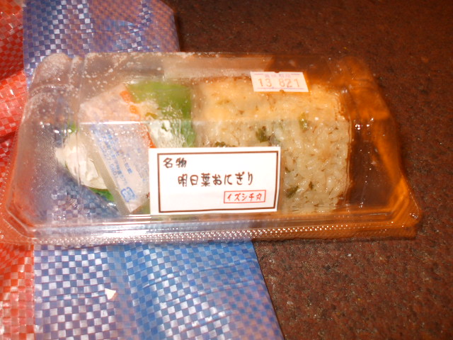 私は大島名物・べっこう寿司を美味しくいただきました。お吸い物には、これまた大島名物・明日葉(あしたば)が入っていて、独特の風味を味わいました。あの香り。私はお気に入りです。