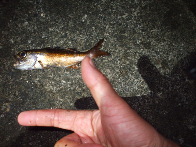 生まれて初めての一匹目は、7時17分イサキ(の子供)でした。