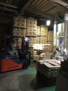 検査の終わったものは、倉庫に積み込むわけですが、集荷依頼が重なるとそうも行かなくなるわけですが、「てっぱ」と言われる手積み作業(30キロの袋を連続で積み上げるので、これが辛い)は、お手伝い最終日にするくらいでした。