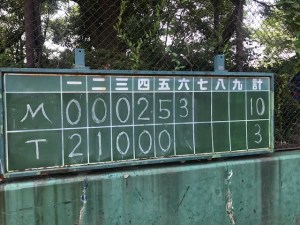 最終戦は、3回までなら勝利ですが、そう甘くありません!時間切れで、正式には5回までで3−7で敗戦!この日、自身はノーヒット😢