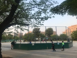 とはいえ、一人壁キャッチボールができるバックネットのコンクリート前は、確保するには激戦場所だろうし、3密を避ける意味もあり、日暮れ近い時間を狙って18時ごろ現地に到着しました。