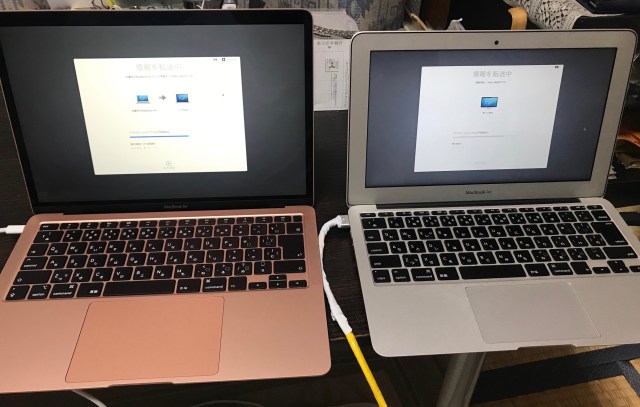 2012年9月に、MacBookWhite(13インチ)から、MacBookAir(11インチ 写真右・コードはボロボロです・・😢)に乗り換えてから、久しぶりのPC(MacBookAir[13インチ・ゴールド]写真左)購入です。