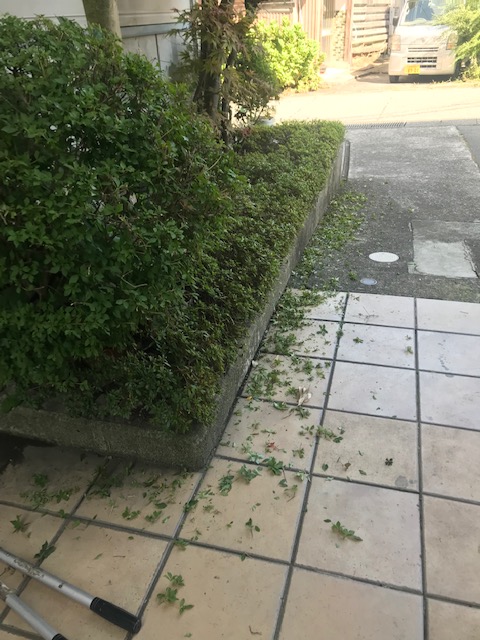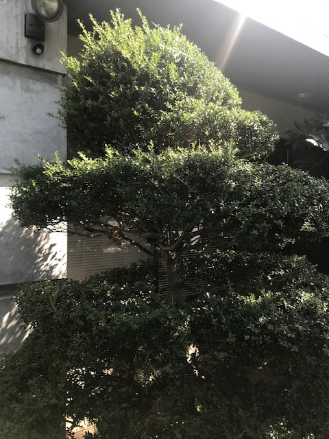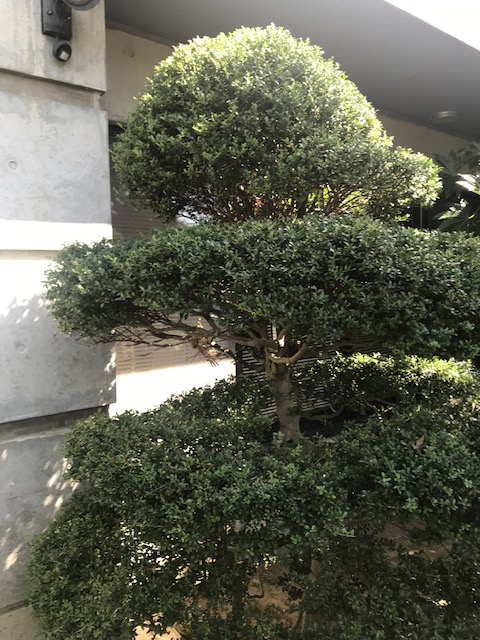 また、今回初めての体験したのが、両腕で動かす大きなハサミ(写真左下に少し見えます)を使った、盆栽(庭木)?の剪定作業でした。