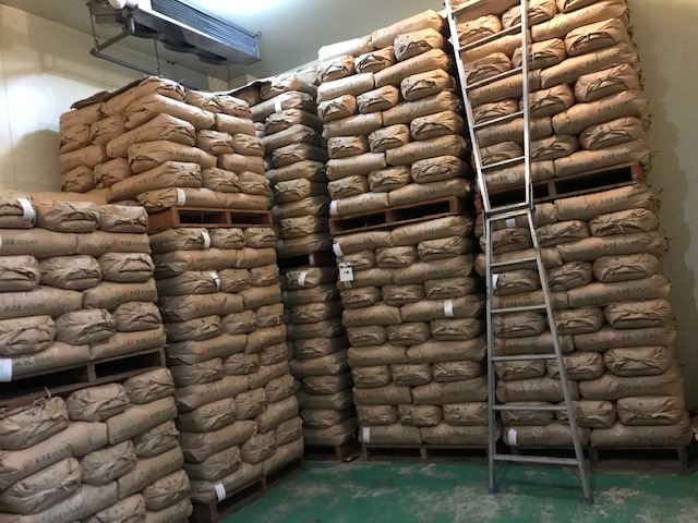 とはいえ、いつもの様に1年分のお米を手作業(「てっぱ」と言います )で積み上げる作業は、各農家への集荷の合間に行っていました。