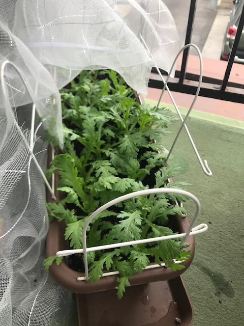 9月に植え、陽の当たらぬ露地の育ちの悪さに痺れを切らし2階ベランダのプランターに一部移植した『春菊』はその後大きく育っています。