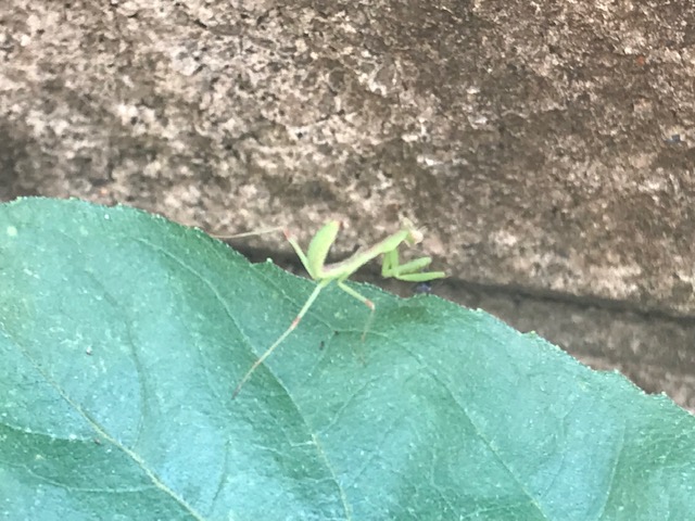 写真だと見えにくいですが、蟻のような小さな黒い虫を捕まえた、これまた小さくて可愛いカマキリです!