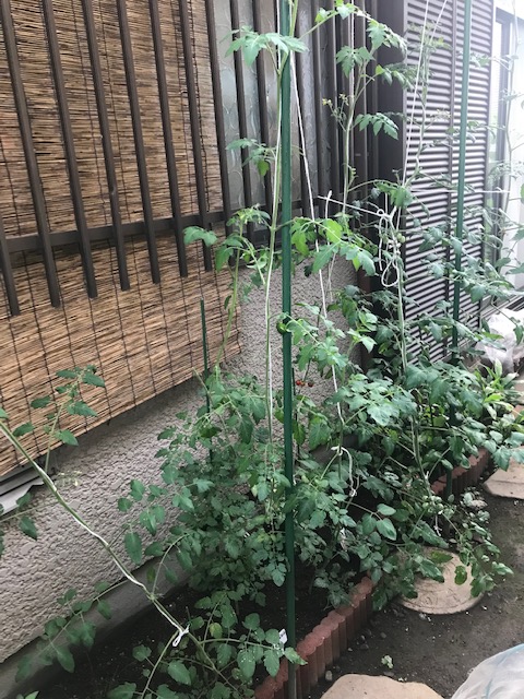 写真だと見にくいですが、奥の川越ミニトマト千果は2メートルを超え、収穫が厳しくなってきました。