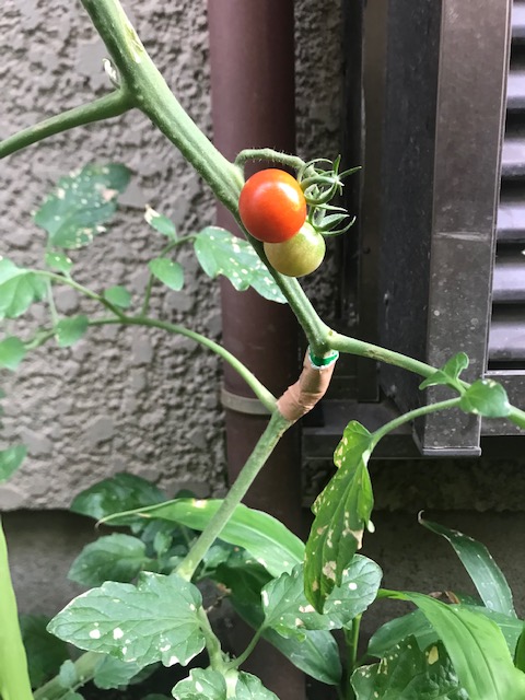 今では、処置した上の部分の青いトマトたちも赤く色づいています。😃