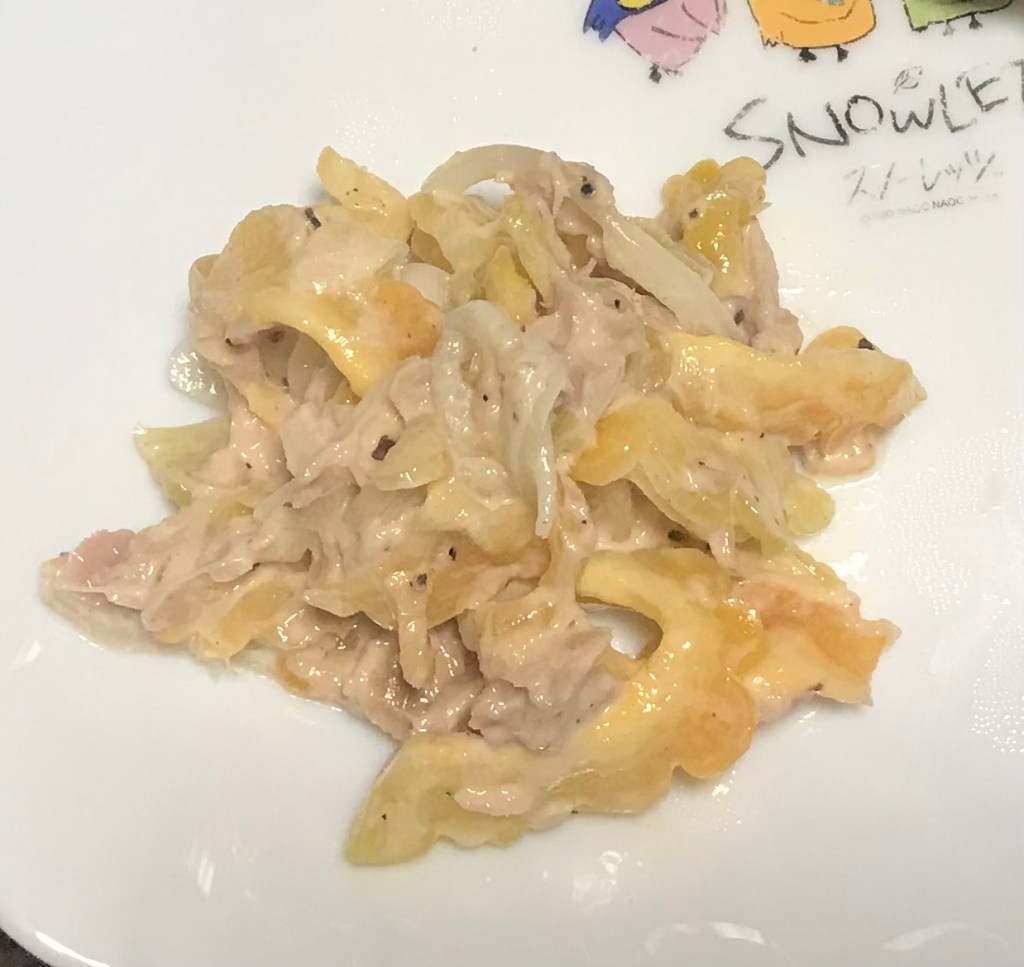 軽く塩揉みして、オニオン、シーチキン、黒胡椒、マヨネーズで混ぜ合わせ サラダに!