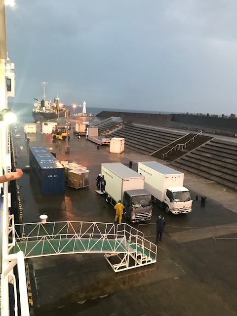 でもって、緊張しながらの乗船(23時)でしたが、実は当初予定日の1日前。つまりは出発日当日の午前中に急きょの日程変更の手続きを完了しての出発でした。