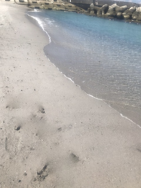 思わず、内地に残してきた息子の名前を砂浜に書きました。😄