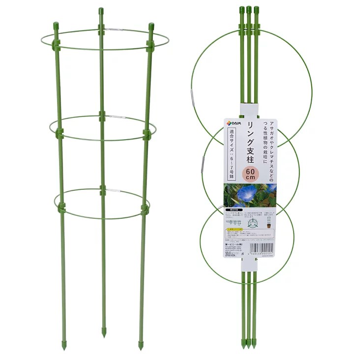 リング支柱の設置は、上方向に伸びるシュロの新芽に3つのリングを上から被せる必要があり、妻の力も借りました。