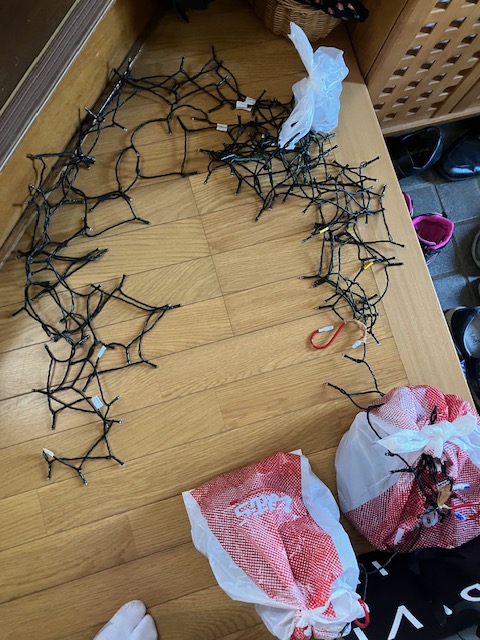 そして数時間の格闘の末、最後の1本だった9本目の飾り付けの際に恐れていたことが起きました。😰