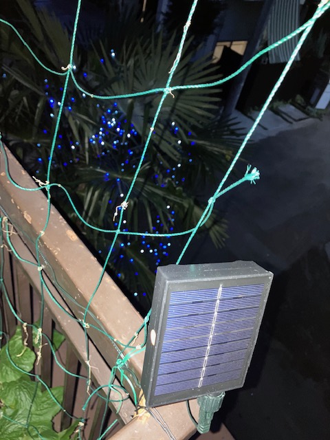 ある時、妻が「シュロにLEDでイルミネーションしてみたら・・」「ソーラーなら電気代かからないし・・」みたいな言葉を呟きました。