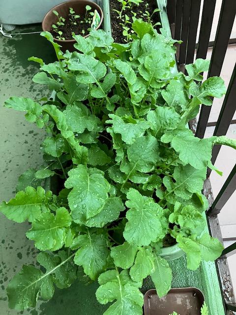 ※写真下のコカブも一緒に収穫しましたが、2枚目の上部に小さく写っていた新芽が食べられるほどに成長しました。