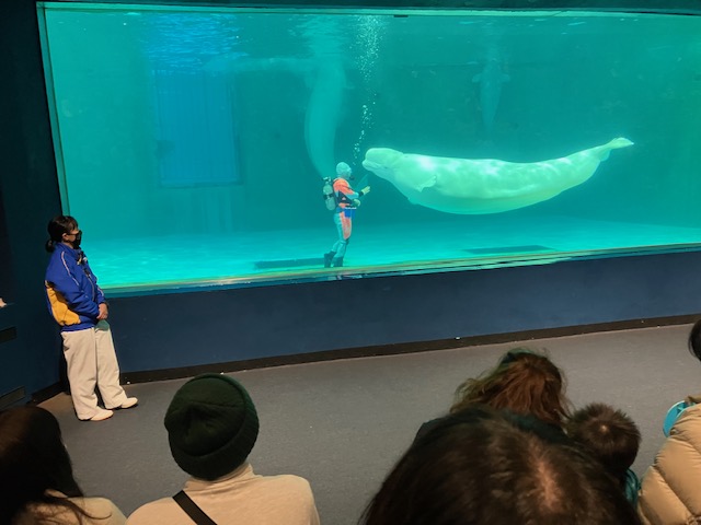 イルカ、シャチ、白イルカ(ベルーガ)。どれも哺乳類の頭の良さを実感しましたが、中でも、ベルーガ(写真あり)の声真似の能力には驚きと可愛さを感じました。