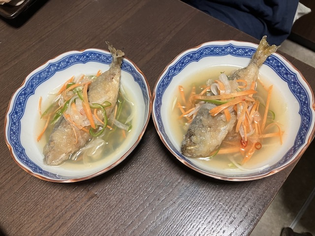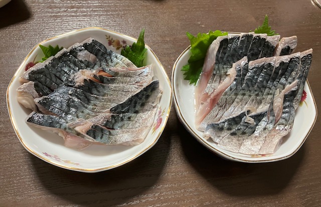 また、寂しい釣果ではありましたが、自宅に戻ってからは、サバはシメサバに、豆アジは南蛮にして美味しくいただきました😋