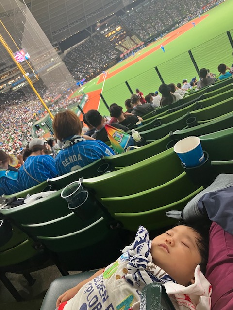 予想通りとも言えますが、途中からうちの息子はあの大声援の大音量の中、スヤスヤと寝ていました。😄
