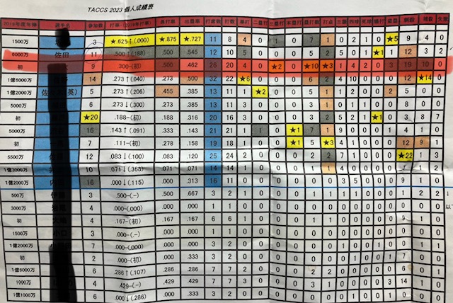 冒頭で少し触れたように、タックスの忘年会では、マネージャーが作成した今シーズンの成績一覧をもとに(酒の肴に)、年俸会議と称して、今シーズンの査定が全員の意見を加味するような、議論形式で行われています。