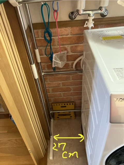 çºæ³šæžã¿ã®ãæŽæ¿¯æ©ã®èã«çœ®ãã©ã³ããªãŒãã¹ã±ããïŒïŒæ®µã¹ãªã ã¿ã€ãïŒã®å¹ ã26ãã®ãããä»åã¯æ¯ãéã§ãïŒãæŽæ¿¯æ©ã®èã«27ãïŒ1ãã¯äœè£ãæã£ãŠïŒã®å¹ ãæ»å®ïŒãããããšãã©ã åŒæŽæ¿¯æ©ã®å°çãåŸ ã£ãŠããïŒè±è¡£å Žã®æ§é ã§å³éãã«ããããã5æ¥åŸã«é éïŒã®ã§ããã