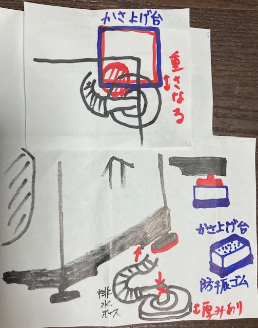 ãã£ã±ãåããã«ãããšæããŸãããæçµçã«ã¯ã鲿¯ãŽã ãã«ãã¿ãŒçã§åããããäžãå°ãææ°Žå£ã®å圢ã®äžéšåãšéããããšã§ãè¶³ã®éšåãå°ã®äžã«èŒããŸããã
