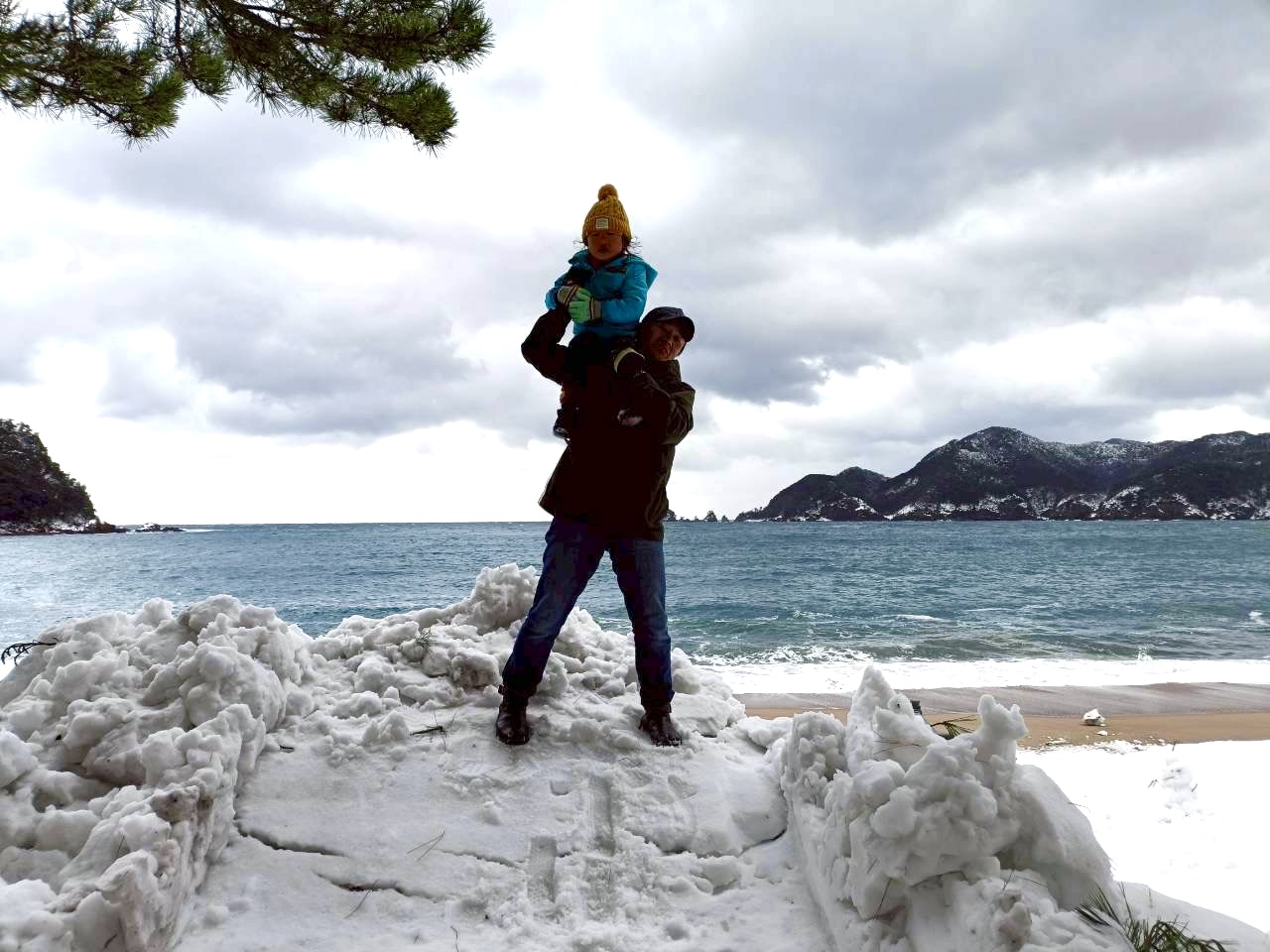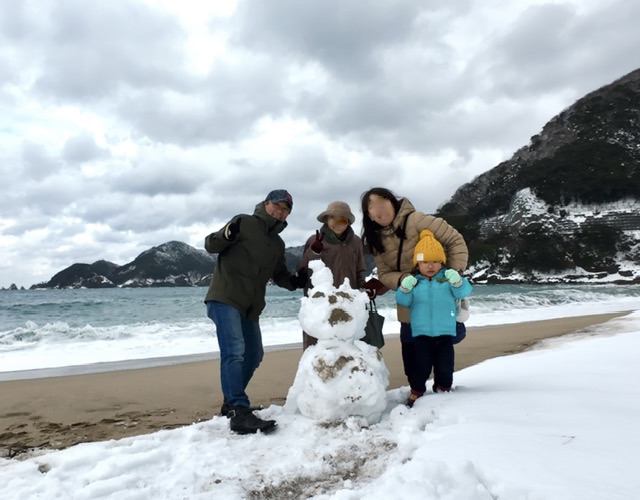 でも、佐津では日本海を見ながら、家族で雪合戦をやったり、雪だるまを作ったり・・