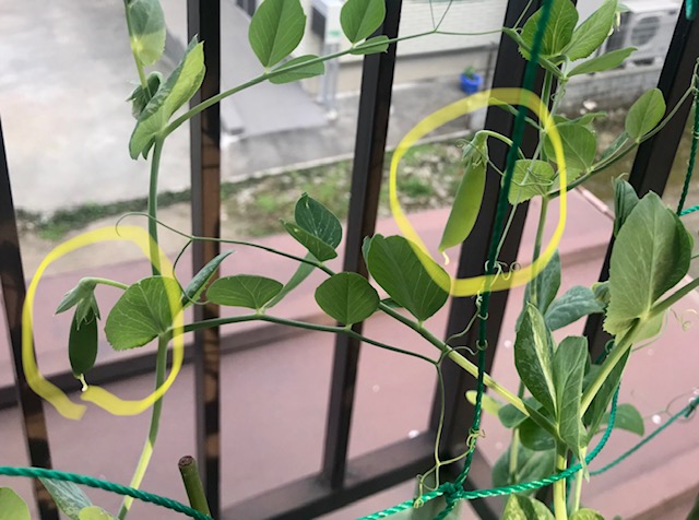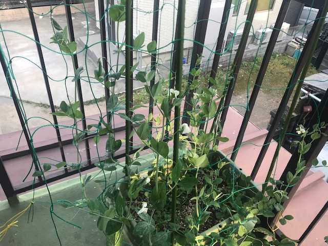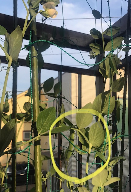 ということで、イモムシ、うどんこ病に持ち堪えているスナップ(スナック)エンドウ。