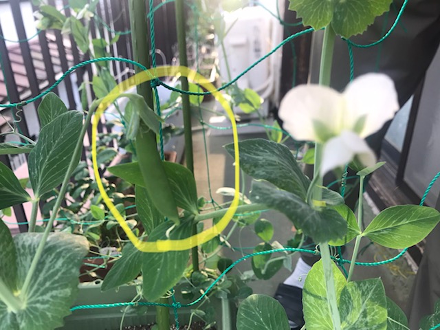 ということで、イモムシ、うどんこ病に持ち堪えているスナップ(スナック)エンドウ。